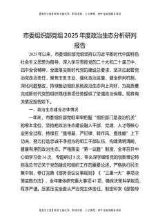 市委组织部党组2025年度政治生态分析研判报告.docx