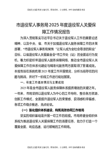 市退役军人事务局2025年度退役军人关爱保障工作情况报告.docx