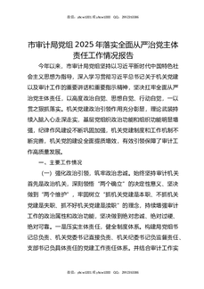 市审计局党组2025年落实全面从严治党主体责任工作情况报告.docx