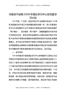市委老干部局2026年理论学习中心组专题学习计划.docx