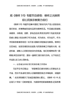 观《榜样10》专题节目感悟:榜样之光映照初心民族宗教聚力前行.docx