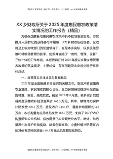 XX乡财政所关于2025年度惠民惠农政策落实情况的工作报告(精品).docx