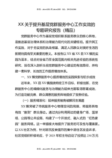 XX关于提升基层党群服务中心工作实效的专题研究报告(精品).docx