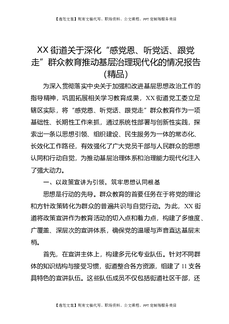 XX街道关于深化“感党恩、听党话、跟党走”群众教育推动基层治理现代化的情况报告(精品).docx