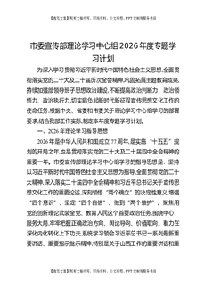 市委宣传部理论学习中心组2026年度专题学习计划.docx