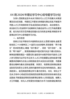 XX局2026年理论学习中心组专题学习计划.docx