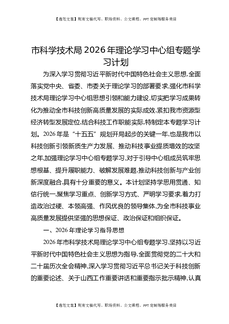 市科学技术局2026年理论学习中心组专题学习计划.docx