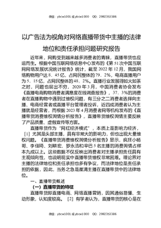 以广告法为视角对网络直播带货中主播的法律地位和责任承担问题研究报告.docx