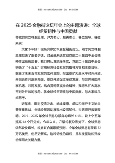 在2025金融街论坛年会上的主题演讲:全球经贸韧性与中国贡献.docx