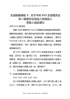 支部换届模板3:关于中共XXX支部委员会新一届委员会组成人员候选人预备人选的请示.docx