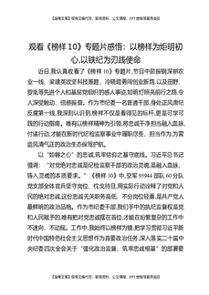 观看《榜样10》专题片感悟:以榜样为炬明初心,以铁纪为刃践使命.docx