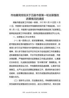 XX市地震局党组关于五届市委第一轮巡察整改进展情况的通报.docx