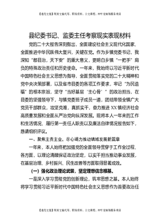 县纪委书记、监委主任考察现实表现材料.docx