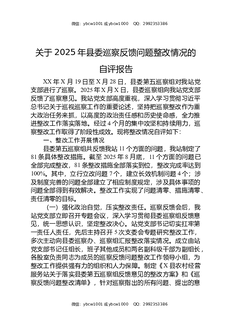 关于2025年县委巡察反馈问题整改情况的自评报告.docx
