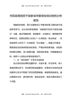 市民政局党员干部参加市委党校培训党性分析报告.docx