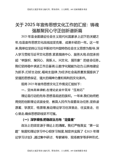 关于2025年宣传思想文化工作的汇报:铸魂强基聚民心守正创新谱新篇.docx