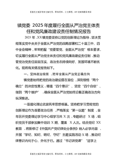 镇党委2025年度履行全面从严治党主体责任和党风廉政建设责任制情况报告.docx