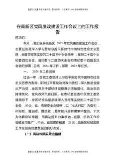 在高新区党风廉政建设工作会议上的工作报告.docx