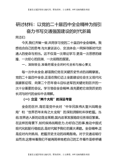 研讨材料:以党的二十届四中全会精神为指引奋力书写交通强国建设的时代新篇.docx