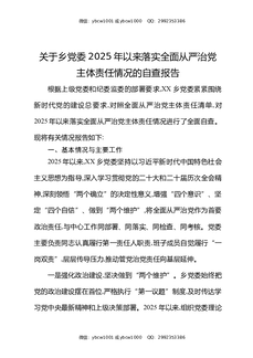 关于乡党委2025年以来落实全面从严治党主体责任情况的自查报告.docx