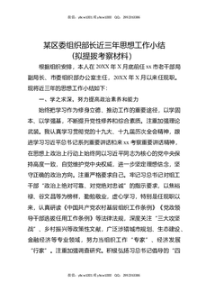 某区委组织部长近三年思想工作小结(拟提拔考察材料).docx