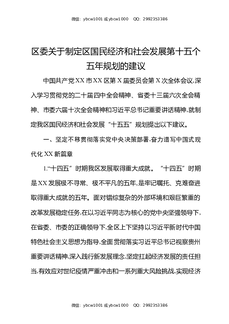 区委关于制定区国民经济和社会发展第十五个五年规划的建议.docx