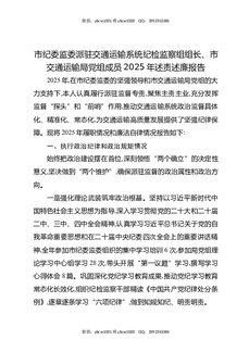 市纪委监委派驻交通运输系统纪检监察组组长,市交通运输局党组成员2025年述责述廉报告.docx