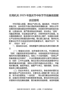 在局机关2025年国庆节中秋节节前廉政提醒谈话提纲.docx