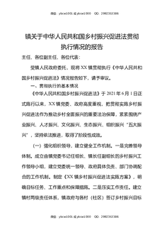 镇关于中华人民共和国乡村振兴促进法贯彻执行情况的报告.docx