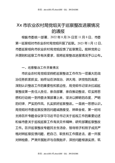 XX市农业农村局党组关于巡察整改进展情况的通报.docx
