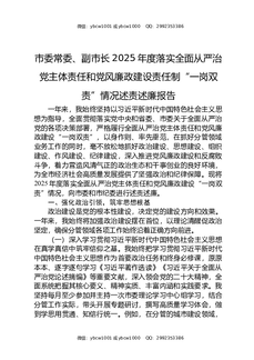 市委常委、副市长2025年度落实全面从严治党主体责任和党风廉政建设责任制“一岗双责”情况述责述廉报告.docx
