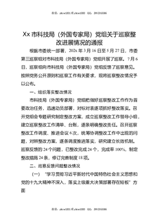 XX市科技局(外国专家局)党组关于巡察整改进展情况的通报.docx