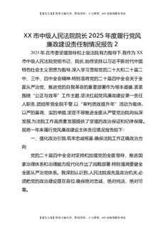 XX市中级人民法院院长2025年度履行党风廉政建设责任制情况报告2.docx