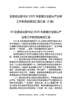 区委政法委书记2025年度履行全面从严治党等工作职责的情况汇报汇编(2篇).docx