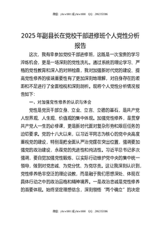 2025年副县长在党校干部进修班个人党性分析报告.docx