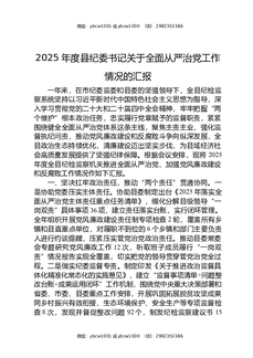 2025年度县纪委书记关于全面从严治党工作情况的汇报.docx