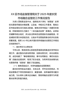 XX区市场监督管理局关于2025年度农贸市场融合监管的工作情况报告.docx