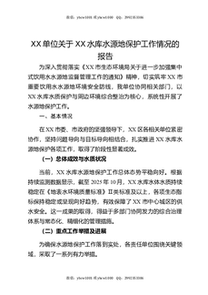 XX单位关于XX水库水源地保护工作情况的报告.docx