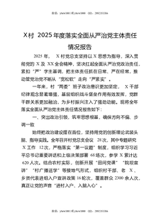XX村2025年上半年落实全面从严治党主体责任情况报告.docx