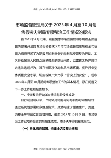 市场监督管理局关于2025年4月至10月制售假劣肉制品专项整治工作情况的报告.docx