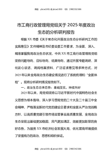 市工商行政管理局党组关于2025年度政治生态的分析研判报告.docx