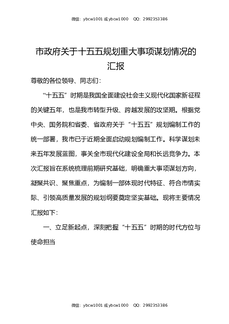 市政府关于十五五规划重大事项谋划情况的汇报.docx