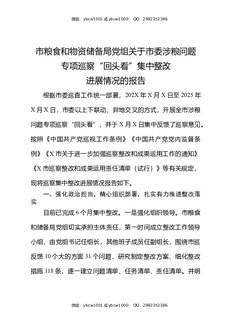 市粮食和物资储备局党组关于市委涉粮问题专项巡察回头看集中整改进展情况的报告.docx