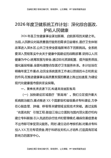 2026年度卫健系统工作计划:深化综合医改,护佑人民健康.docx