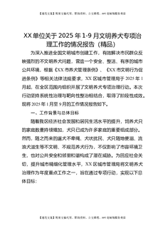 XX单位关于2025年1-9月文明养犬专项治理工作的情况报告(精品).docx