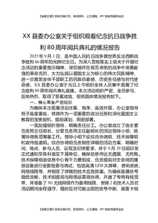 XX县委办公室关于组织观看纪念抗日战争胜利80周年阅兵典礼的情况报告.docx