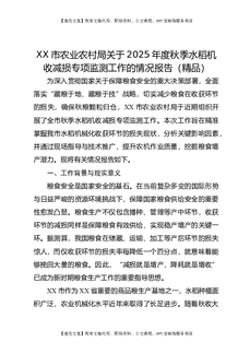 XX市农业农村局关于2025年度秋季水稻机收减损专项监测工作的情况报告(精品).docx
