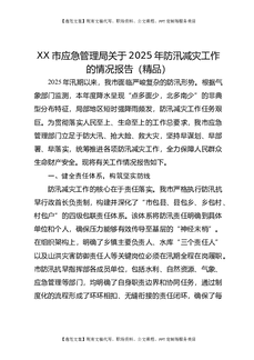 XX市应急管理局关于2025年防汛减灾工作的情况报告(精品).docx