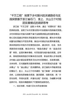 “千万工程”背景下乡村振兴的关键路径与实践探索基于浙江省石门、龙上、大山三个村组团发展模式的调研思考.docx