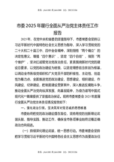 市委2025年履行全面从严治党主体责任工作报告.docx